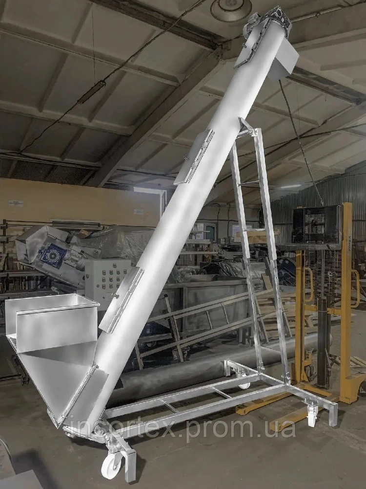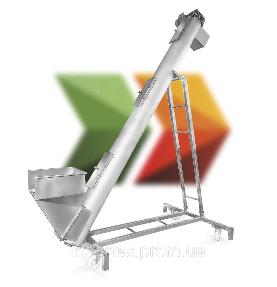 продуктивність до 5 тонн/год відстань від шнека до корпуса 1мм регулювання нахилу 0 ° - 60 ° ревізійні люки по всій довжині колеса для зручності при пересуванні
